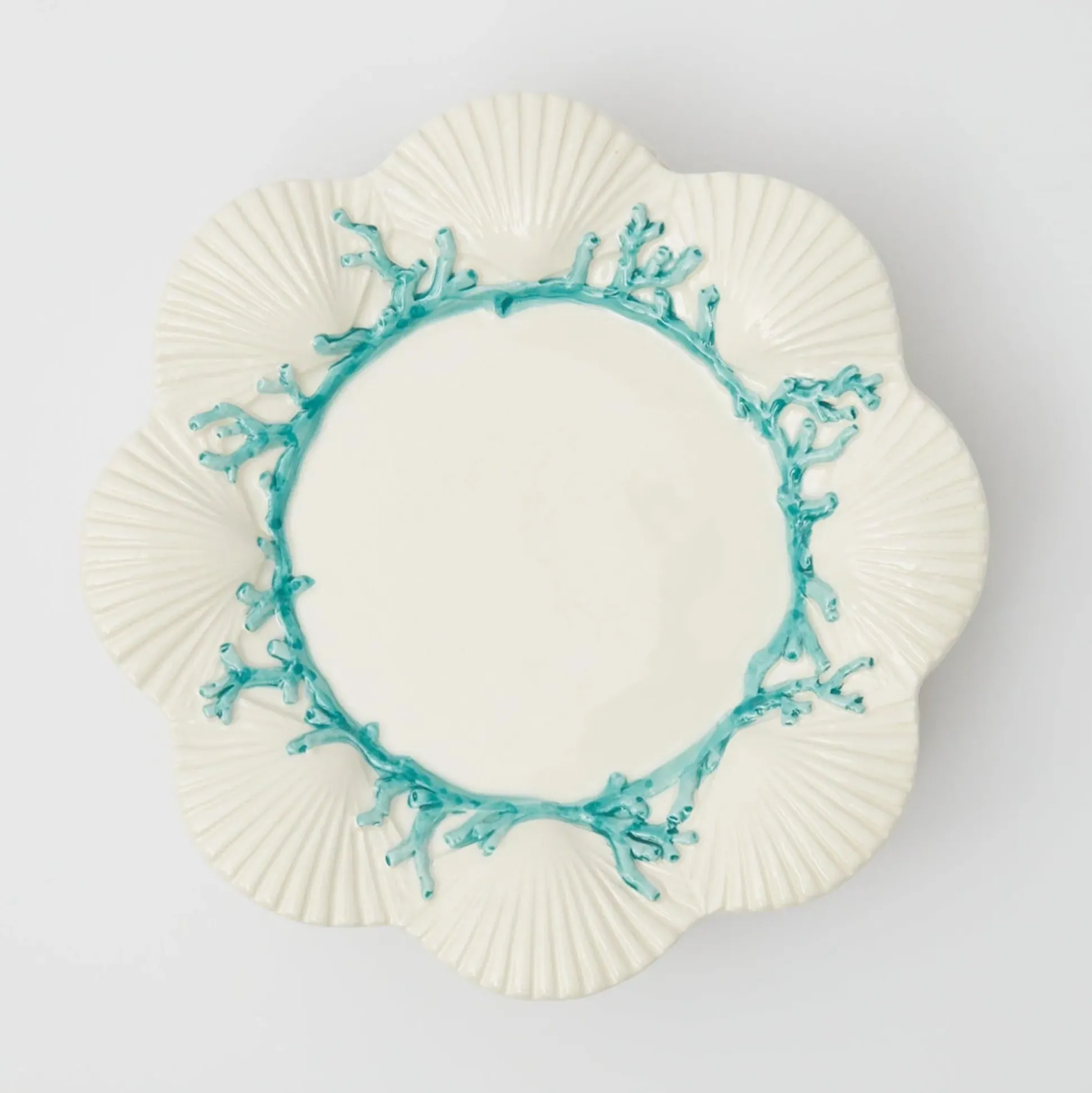 Our Beautiful Blue Coral Dinner Plate Is Sure To Impress With Its Vibrant Blue Coral And Exquisite Scalloped Edges.Exotic And Original This Captivating Plate Goes Best With Our Blue Coral Tablecloth, Cara Woven Placemats & Serena Bamboo Cutlery.Size: Diameter 30Cmmaterial: Ceramiccare Instructions: Dishwasher Safe.
