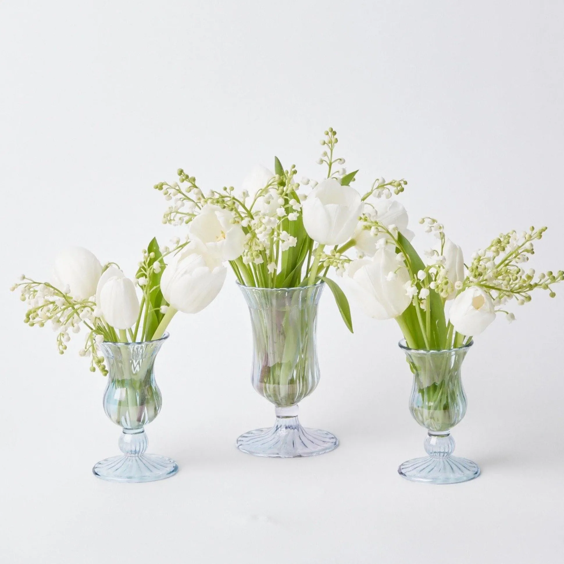 Our Blue Vases Have Gentle Fluted Sides And Elegant Footed Bases, Perfectly Displaying Your Favourite Flowers To Your Table.Pair Them With Our Powder Blue Lantern, Serena Blue Applique Linen And Serena Bamboo Cutlery.Size:X1 Tall Vase: 16Cm High X 8Cm Widex2 Small Urn Vase: 13Cm High X 6Cm Widedue To Their Charming Handblown Nature, The Glasses Can Differ Slightly In Size And Shape.Care Instructions: Hand Wash Only.