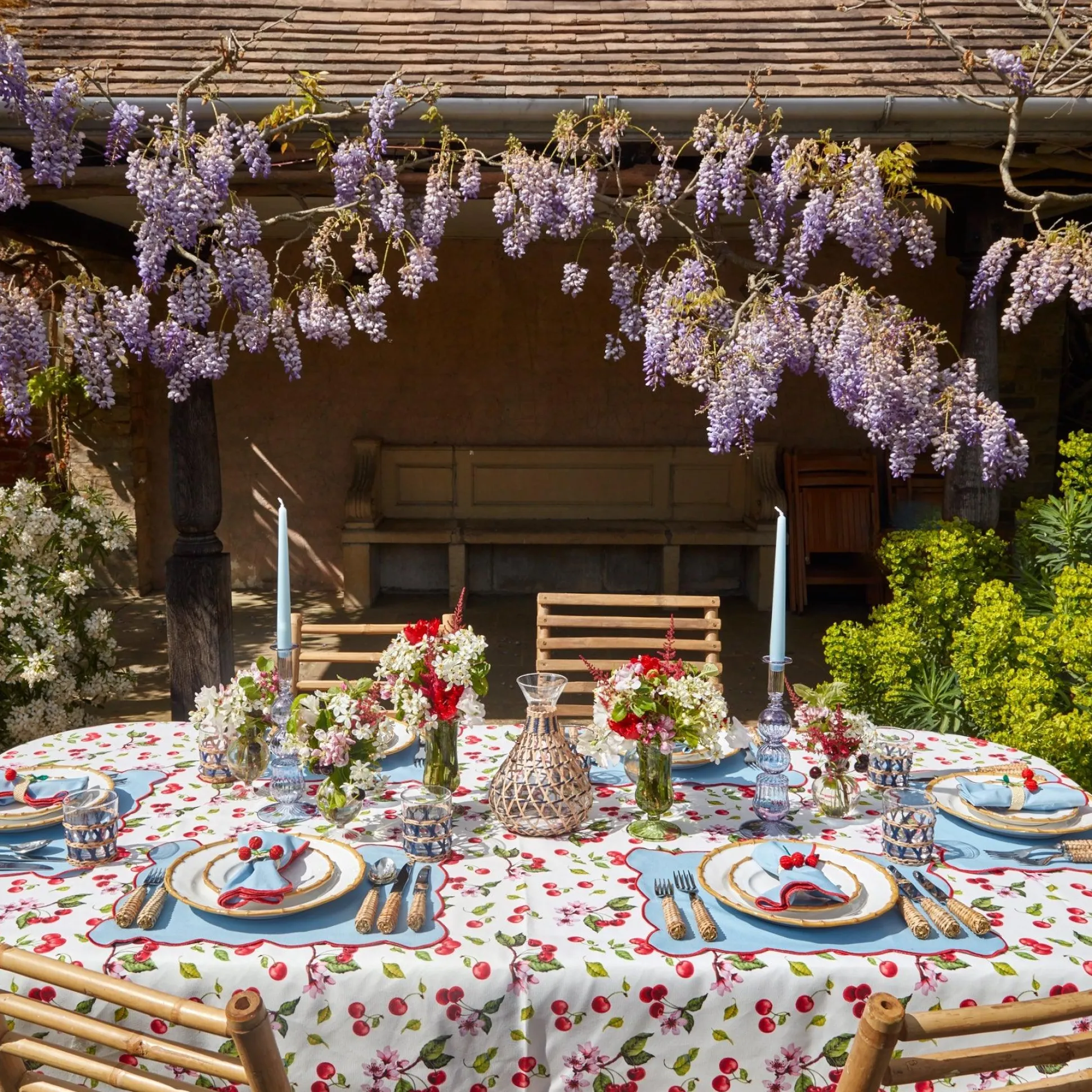 These Stunning Sky Blue Placemats And Napkins, Designed For Matches Fashion, Come With A Vibrant Red Scalloped Edge.These Linens Look Beautiful Laid On Our Red Cherry Tablecloth And Accompanied By Our Raffia Cherry Napkin Holders And Rattan Cutlery To Complete The Look.Product Size: 39 X 39 Cmproduct Info: 100% Cotton, Water Resistant.Care Instructions: Wash On Delicate Cycle. Do Not Tumble Dry.For Bespoke Quantity Of Placemats And Napkins Please Email [email protected]. We Offer The Option To Personally Bespoke Your Napkins With Our Mrs. Alice Monogram Service. If You Would Like To Opt For This, Please Enter Up To 2 Initials In The Box Provided. Please Allow An Extra 7-10 Days From The Time Of Your Order For Monogramming.
