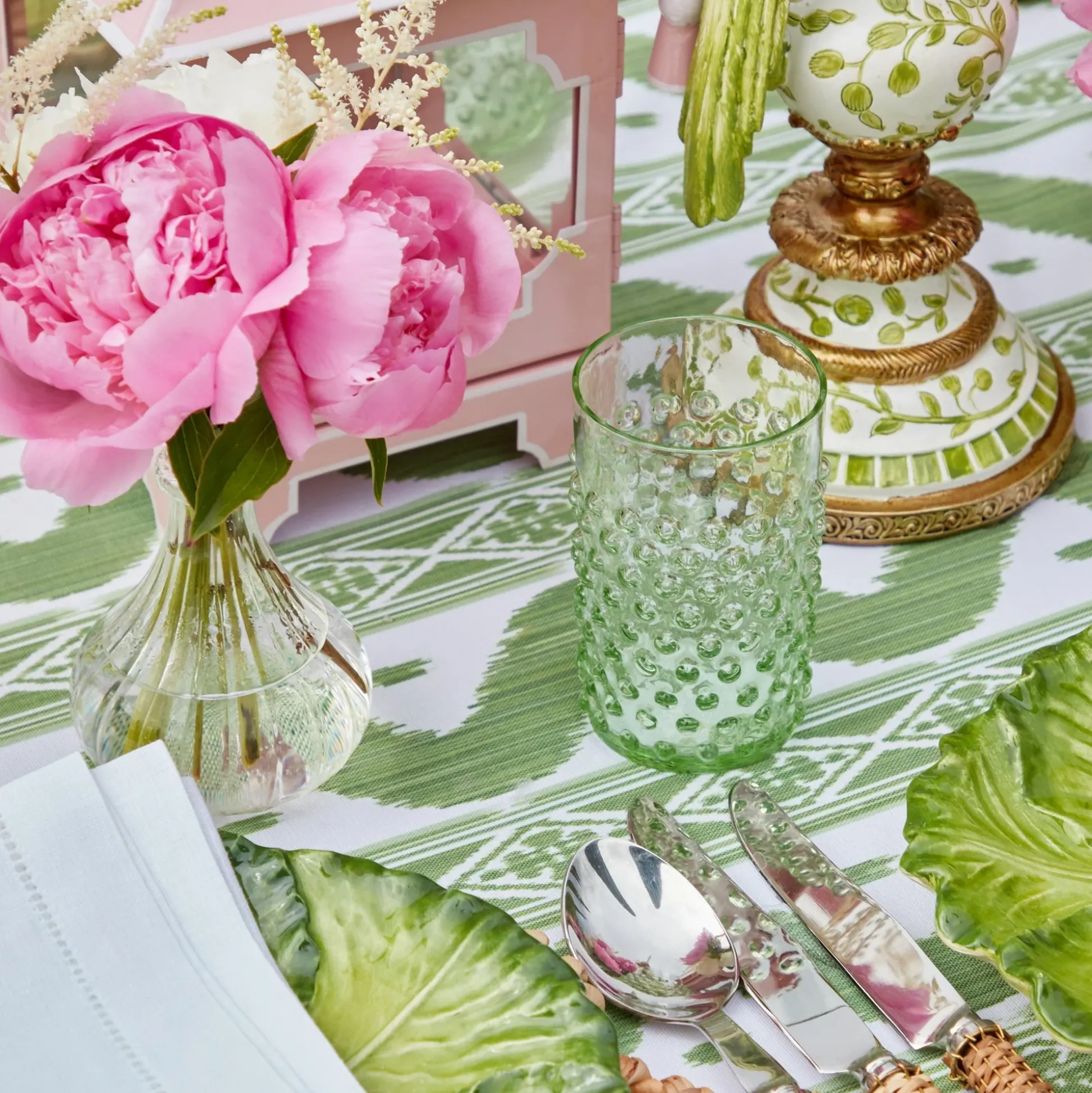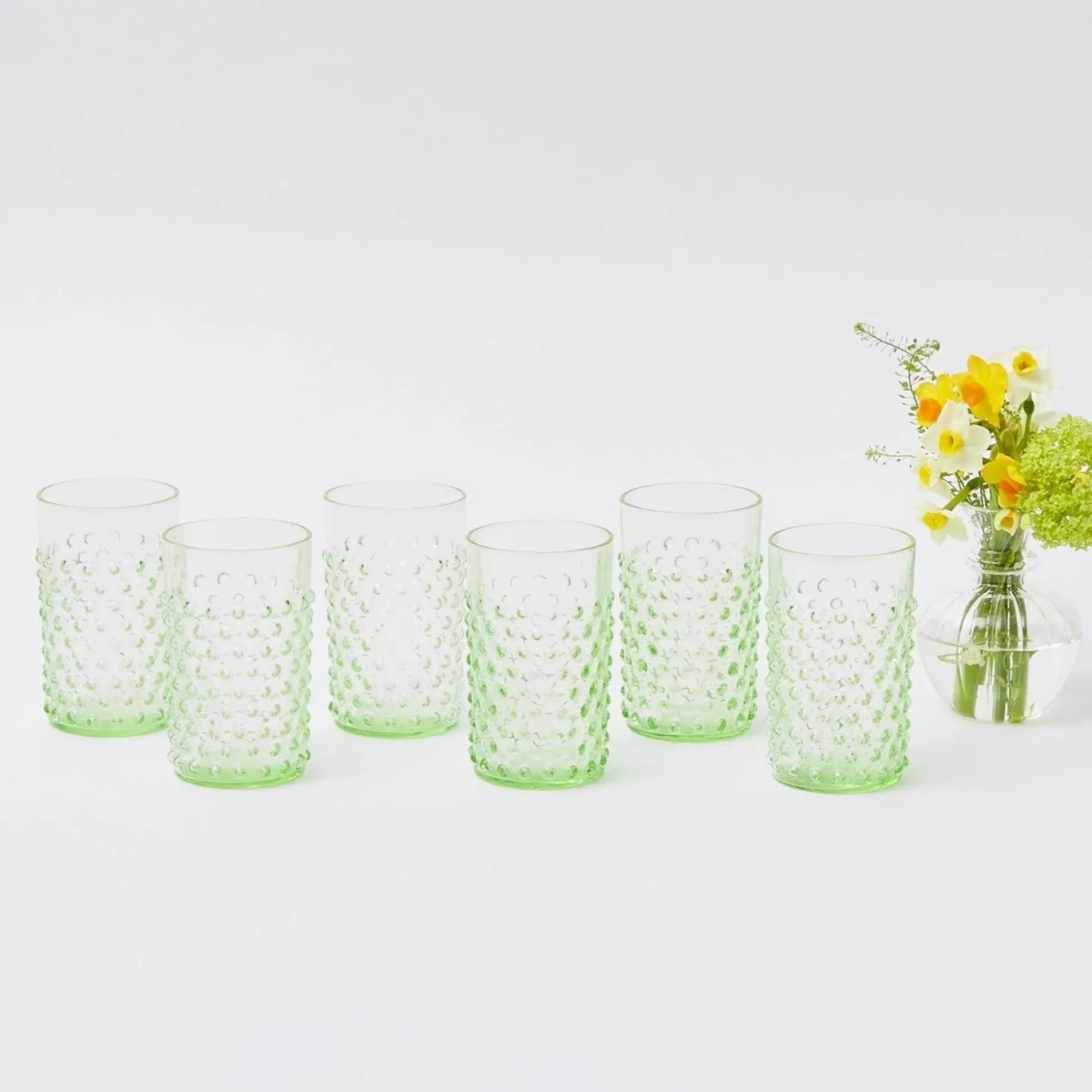 Our Set Of Emerald Hobnail Water Glasses Made In Crystal Glass Make The Most Alluring Addition To Your Table.With Chic Studded Design And Reassuring Weight, This Unique Set Will Make A Beautiful Statement On Any Spring Table.It Can Be Accompanied By The Pink Hobnail Jug With Emerald Handle, Green Ikat Tablecloth And Capri Lettuce Dinner Plates.Size: 12Cm Tall, 7.5Cm Diameter Dishwasher Safe.