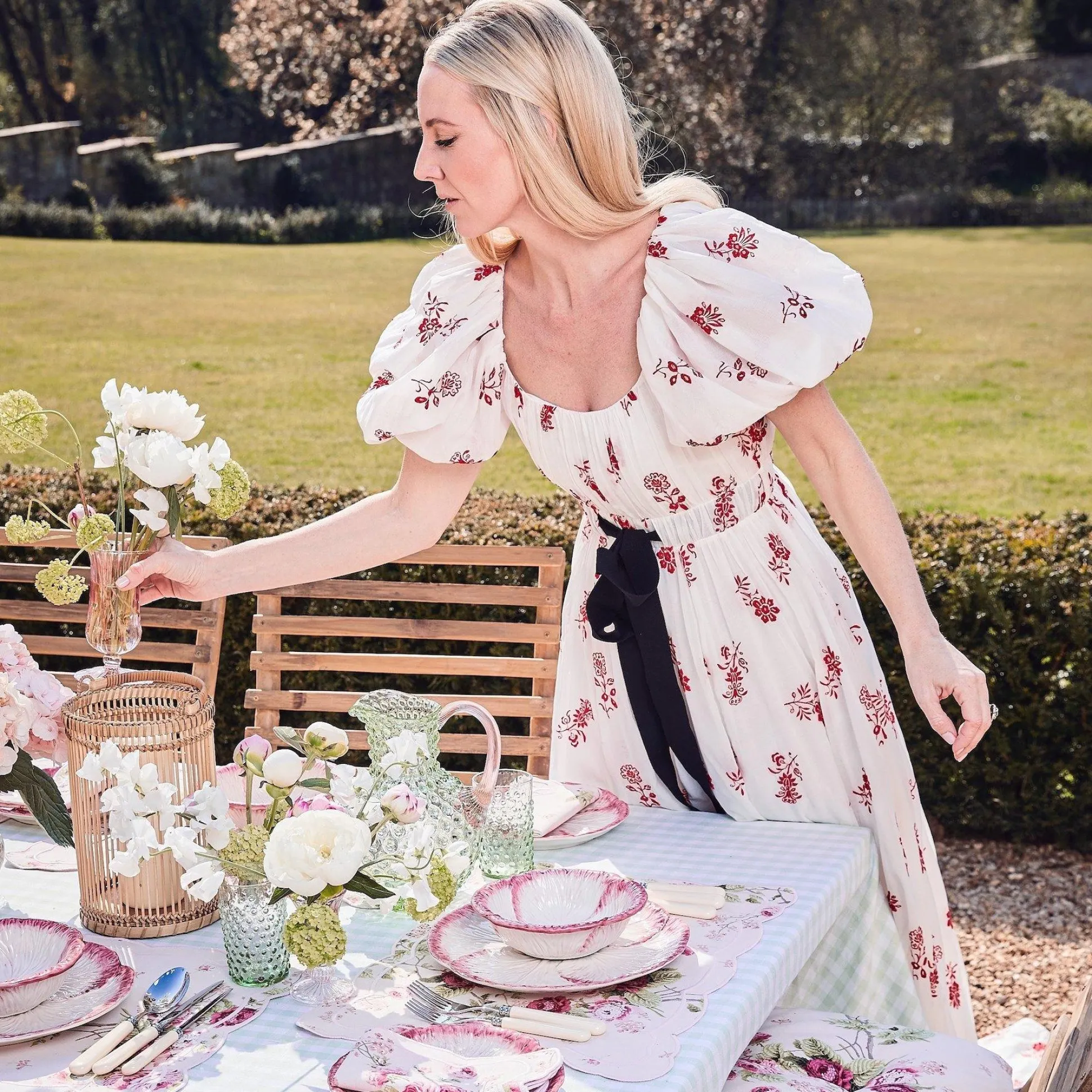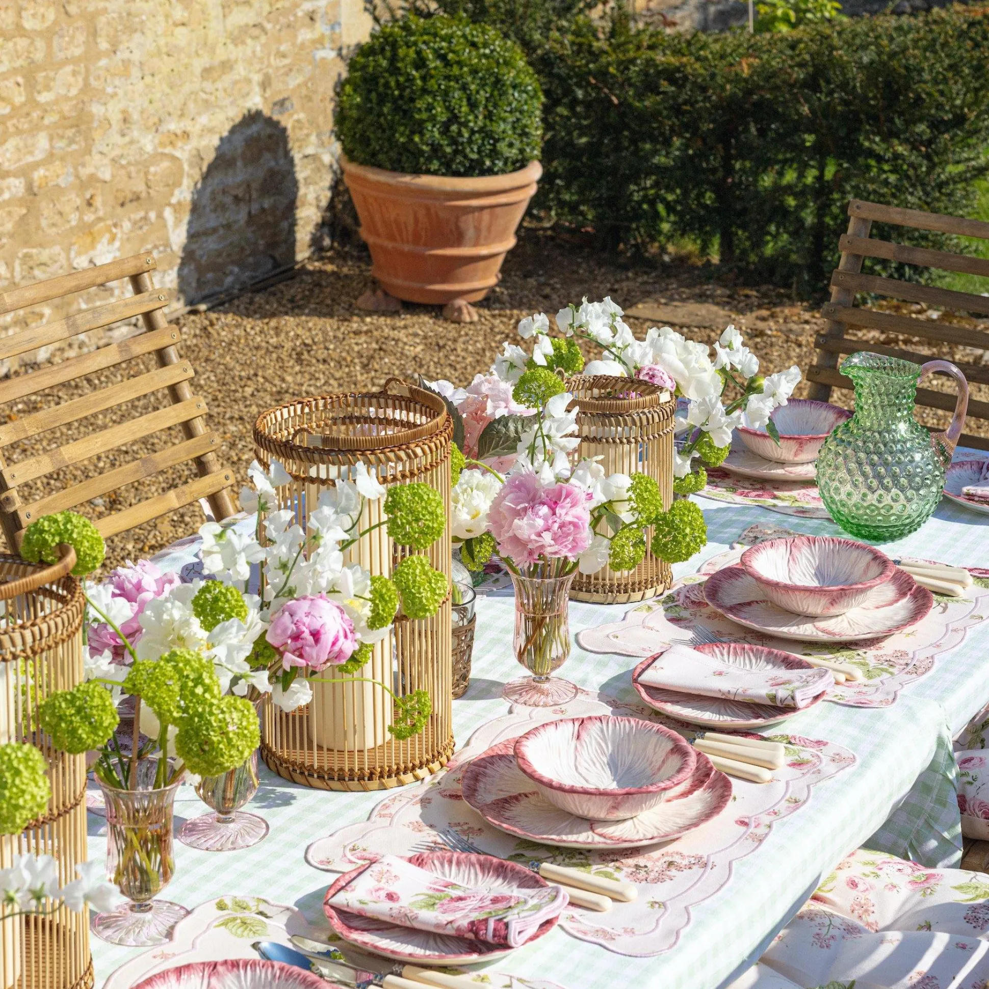 Our Emerald Hobnail Jug With A Beautiful Rose Pink Handle Has Been Designed Exclusively For Mrs. Alice.With Chic Studded Design And Reassuring Weight, This Unique Set Will Make A Beautiful Statement On Any Spring Table.Coming With 6 Emerald Glasses, This Set Works Well Alongside Our Pink Capri Plates And Nancy Rose Tablecloth. Product Size:Jug: 22Cm High X 17Cm Wideglasses: 12Cm High X 8Cm Widedishwasher Safe.