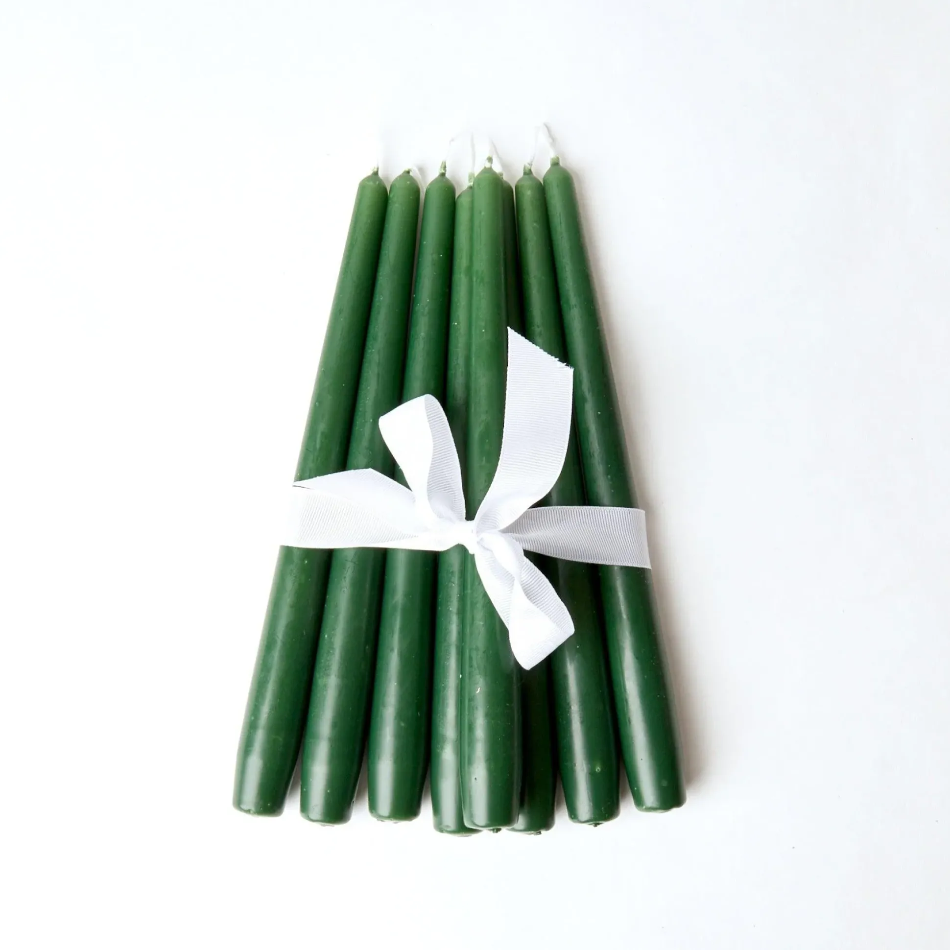 Our Tapered Forest Green Candles Come In A Set Of 8. Pair With Our Mrs. Alice Candle Holders To Complete The Look.These Slender Candles Which Burn Evenly And Produce Minimal Smoke Are Also Available In Berry Red And Gold.One Set Includes:X8 Candles Of One Colour. Size: 25 Cm High