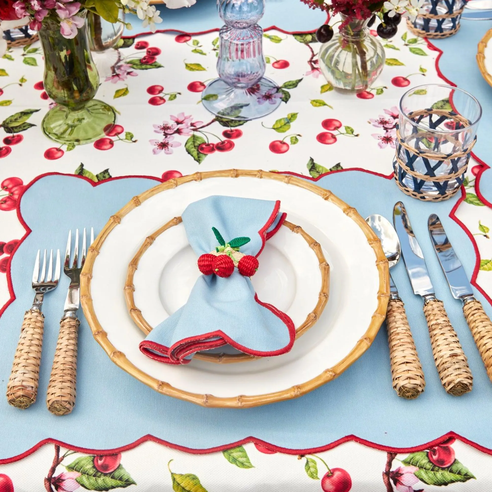 These Raffia Water Glasses Add A Charming Touch To Any Table Whether Indoors Or Outdoors.With Their Removable Raffia Woven Sleeve They Are Not Only Pretty But Easy To Wash. We Love To Pair Them With Our Red Cherry Tablecloth And Nancy Bamboo Dinner & Starter Plates.Size: Height 10Cm X Diameter 8Cm.