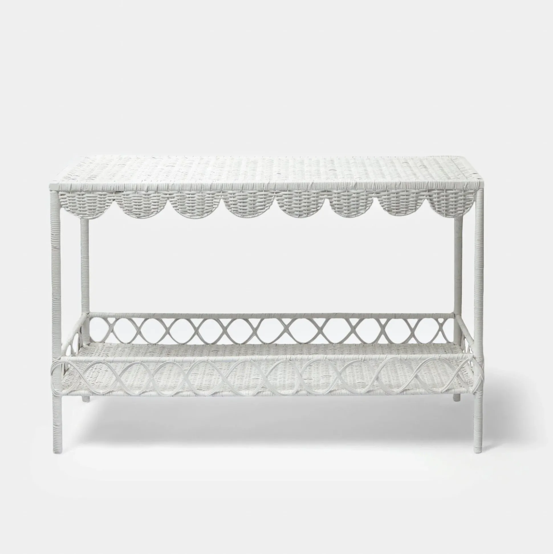 Be the first to review “Madeleine White Rattan Scalloped Console Table” Cancel reply