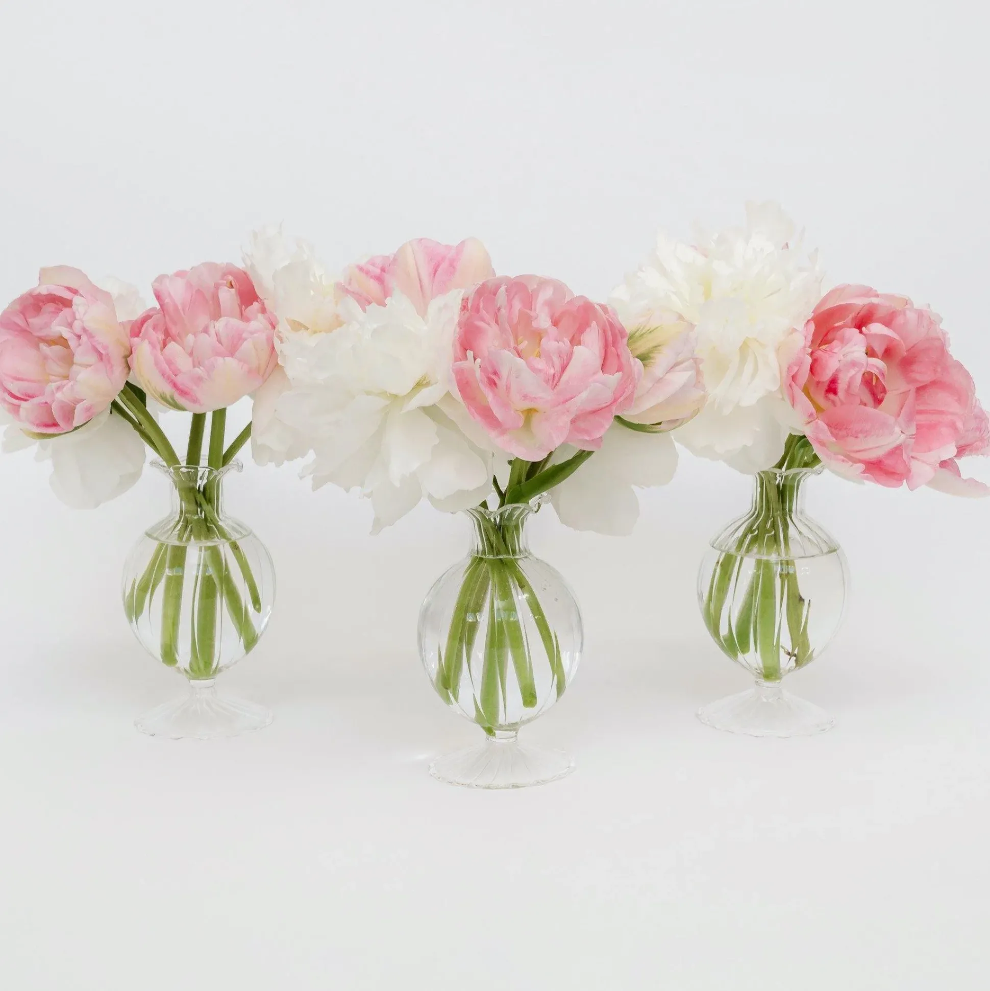Our Nancy Footed Bud Vases Are The Ideal Vessel For Any Bloom. Featuring Three Delicate Glass Bud Vases With A Delicate Footed Design, They Are A Firm Favourite On Alice’s Tables.Product Size: 12Cm High, 5Cm Across
