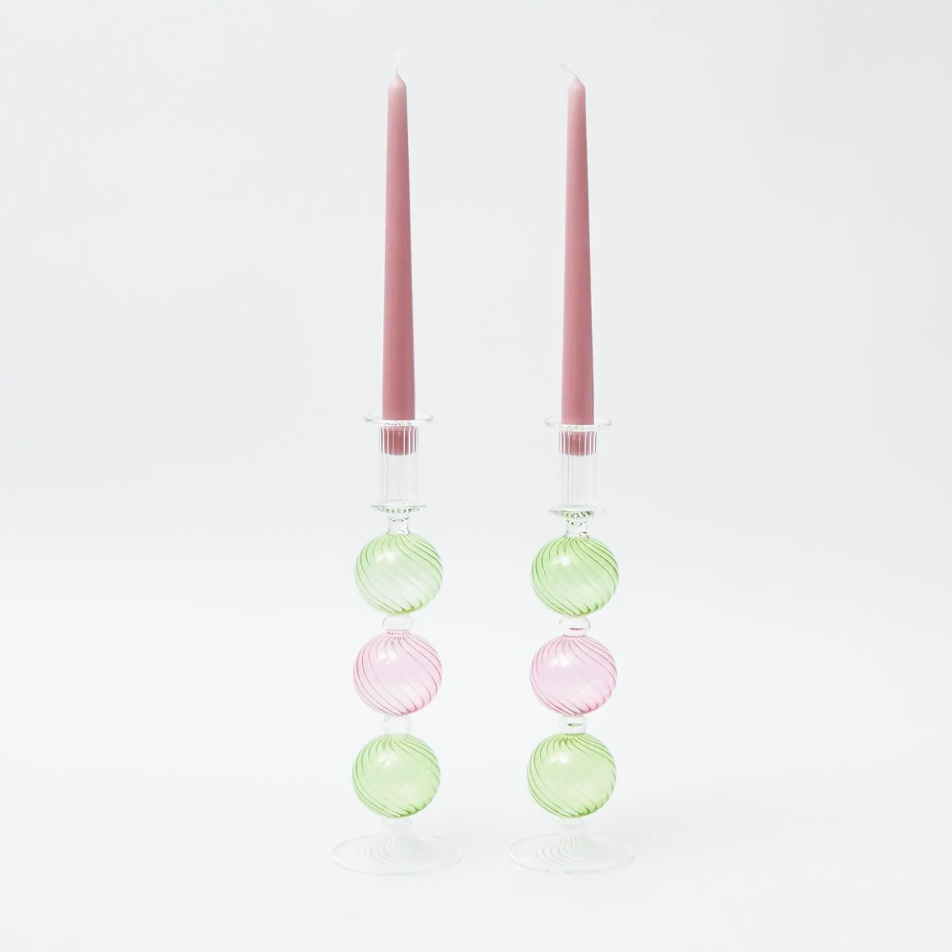 This Impressive Pair Of Hand Blown Camille Candle Holders In Delicious Peony Pink And Spring Green Enhance Any Dining Or Kitchen Table. Pair Them With Our Joy Of Spring Decoration Set, Sienna Pink Placemats & Napkins Plus Our Lola Tablecloth.Due To Their Charming Handblown Nature, The Candleholders Can Differ Slightly In Size And Shape.Size: 30Cm High X 9Cm Widecare Instructions: Hand Wash Using Cold Water.