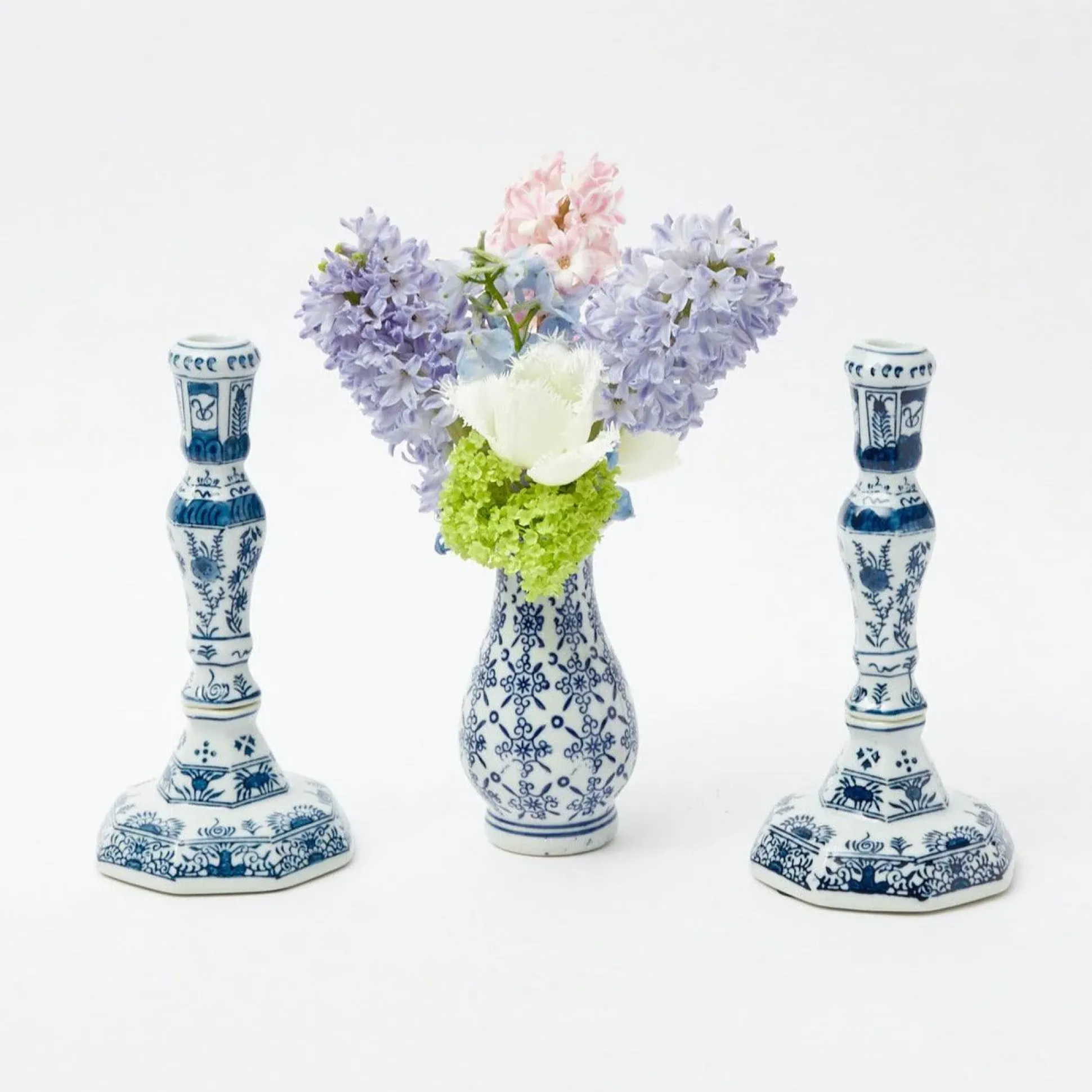 A Beautiful Pair Of Blue & White Candlesticks Made In Fine Porcelain. This Charming Design Is Based On A Delft Candle Holder From 18Th Century Amsterdam And Are Perfect For Indoor And Outdoor Dining.These Pair Well With Our Blue Petal Bamboo Dinner Plates, Soft Blue Candles And Blue Garland Decoration Set.Height: 23Cm
