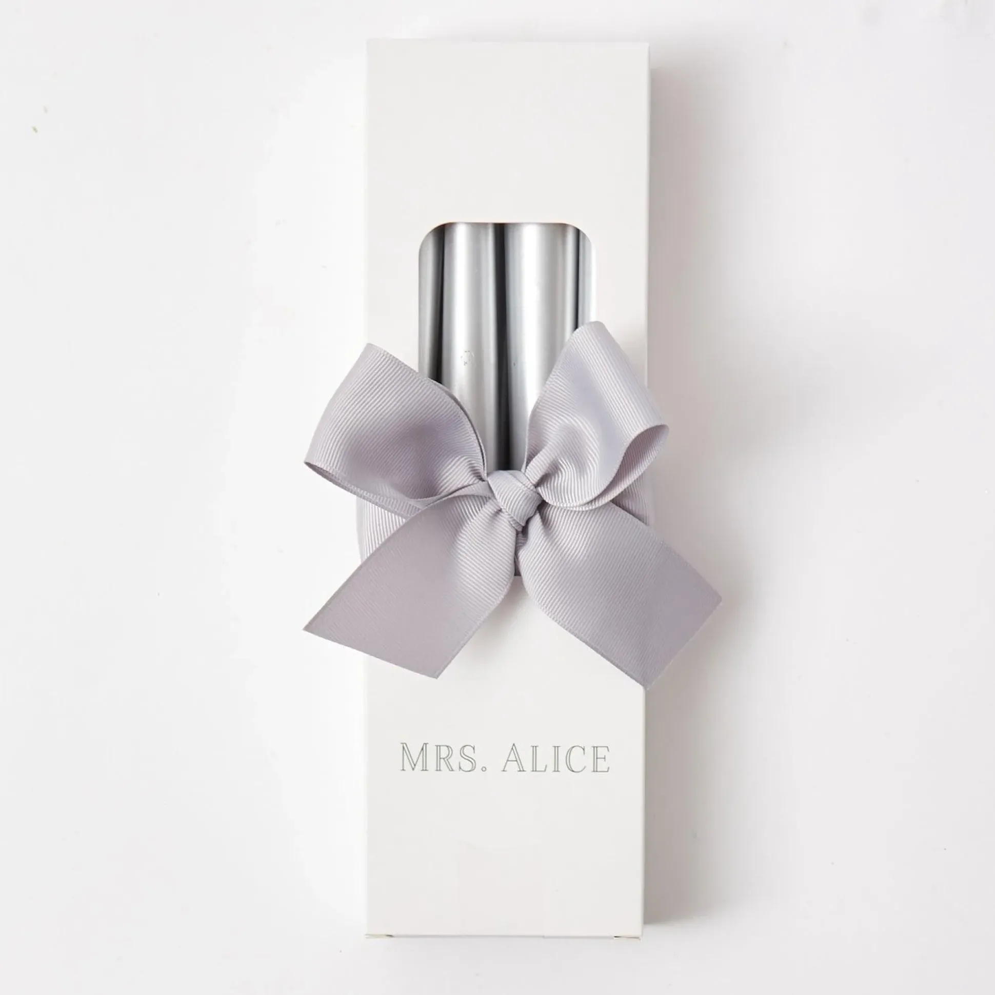 Our Tapered Silver Candles Come In A Set Of 8 And Work Perfectly With Our Our Trio Of Mercury Silver Candle Holders And Tall Lace Edge Candle Holders.These Slender Candles Which Burn Evenly And Produce Minimal Smoke Are Also Available In White And Forest Green.One Set Includes:X8 Candles Of One Colour. Size: 25 Cm High