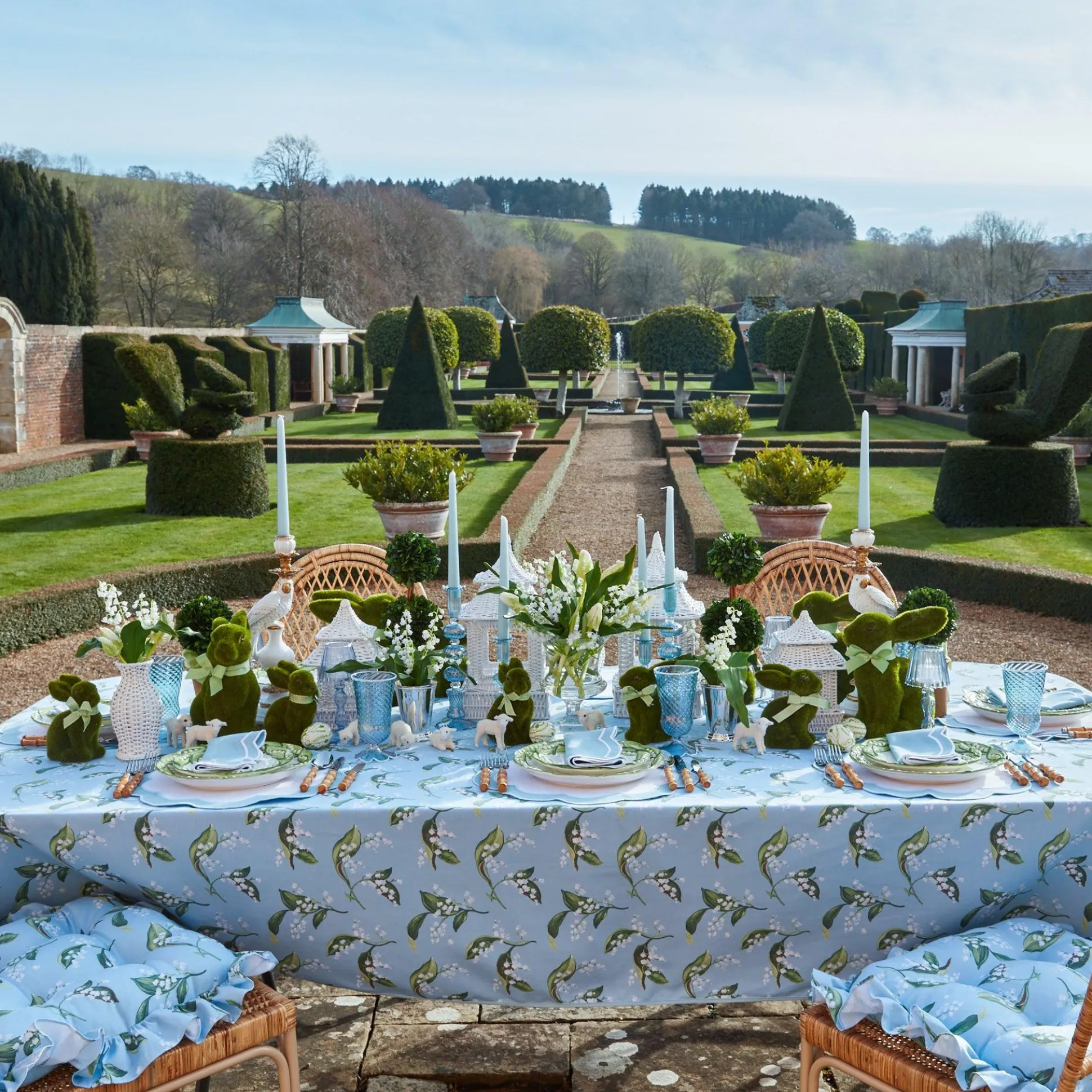 This Pretty Sky Blue And Green Tablecloth With Its Exquisite Lily Of The Valley Pattern Is Perfect Start To Any Spring Or Summer Dining. Shot In The Gardens Of Alice’s Welsh Family Home, This Tablecloth Comes With Matching Lily Of The Valley Frilled Seat Pad Cushion.Lay It With Our Lily Of The Valley Dinner Plates, Lily Of The Valley Tea Set & Serena Blue Applique Placemats & Napkins.Medium: 180Cm X 275Cmlarge: 180Cm X 304Cm Care Instructions: Hand Wash With Colddo Not Tumble Dryiron On Reverse