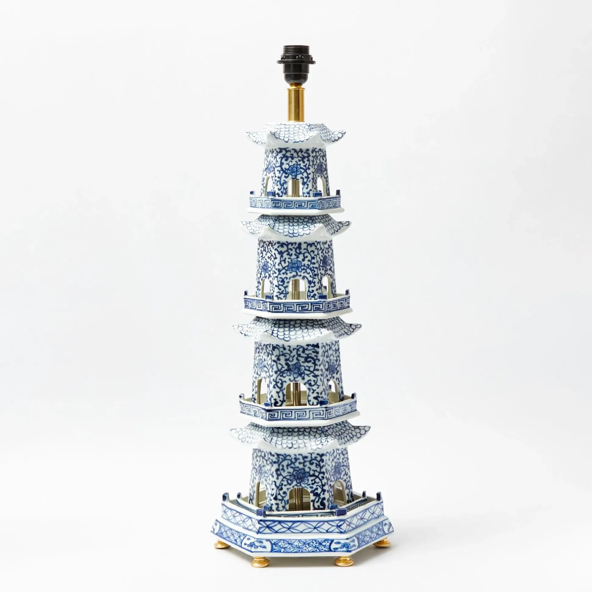 This Distinctive Ceramic Pagoda Lamp Is One Of The Exceptional Pieces Of The Serena Collection.With Four Beautifully Ornate Tiers, This Lamp Was Designed In The Traditional Blue And White Chinoiserie Style, Quintessential Of The 18Th English Country House Style. It Would Be A Stand Out Decoration In Any Home.Suitable On Any Side Or Hall Table, Alice Adores This Joyful Piece And Likes To Pair It With The Large Chinoiserie Ginger Jar, Cabbage Dinner Plate And Serena Bamboo Cutlery.Our Chinoiserie Lamp Comes With A Standard European Plug Socket, If You Require An Alternative Socket Please Specify At Checkout.Please Note The Lampshade Is Not Included. Size: 71Cm High X 28Cm Wide Bulb Fitting: E-27, Max. 60W, 150 Cm Cord W/Switch
