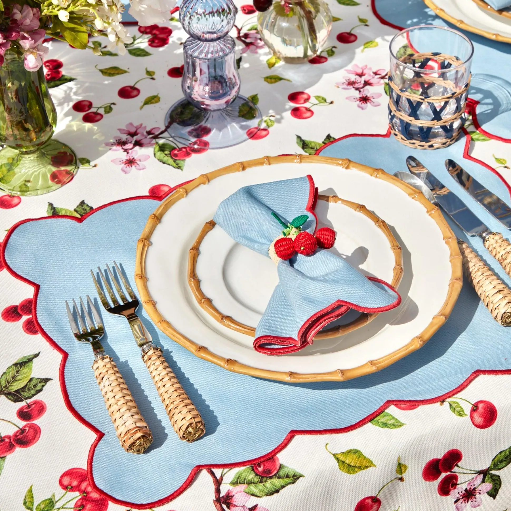 These Raffia Water Glasses Add A Charming Touch To Any Table Whether Indoors Or Outdoors.With Their Removable Raffia Woven Sleeve They Are Not Only Pretty But Easy To Wash. We Love To Pair Them With Our Red Cherry Tablecloth And Nancy Bamboo Dinner & Starter Plates.Size: Height 10Cm X Diameter 8Cm.