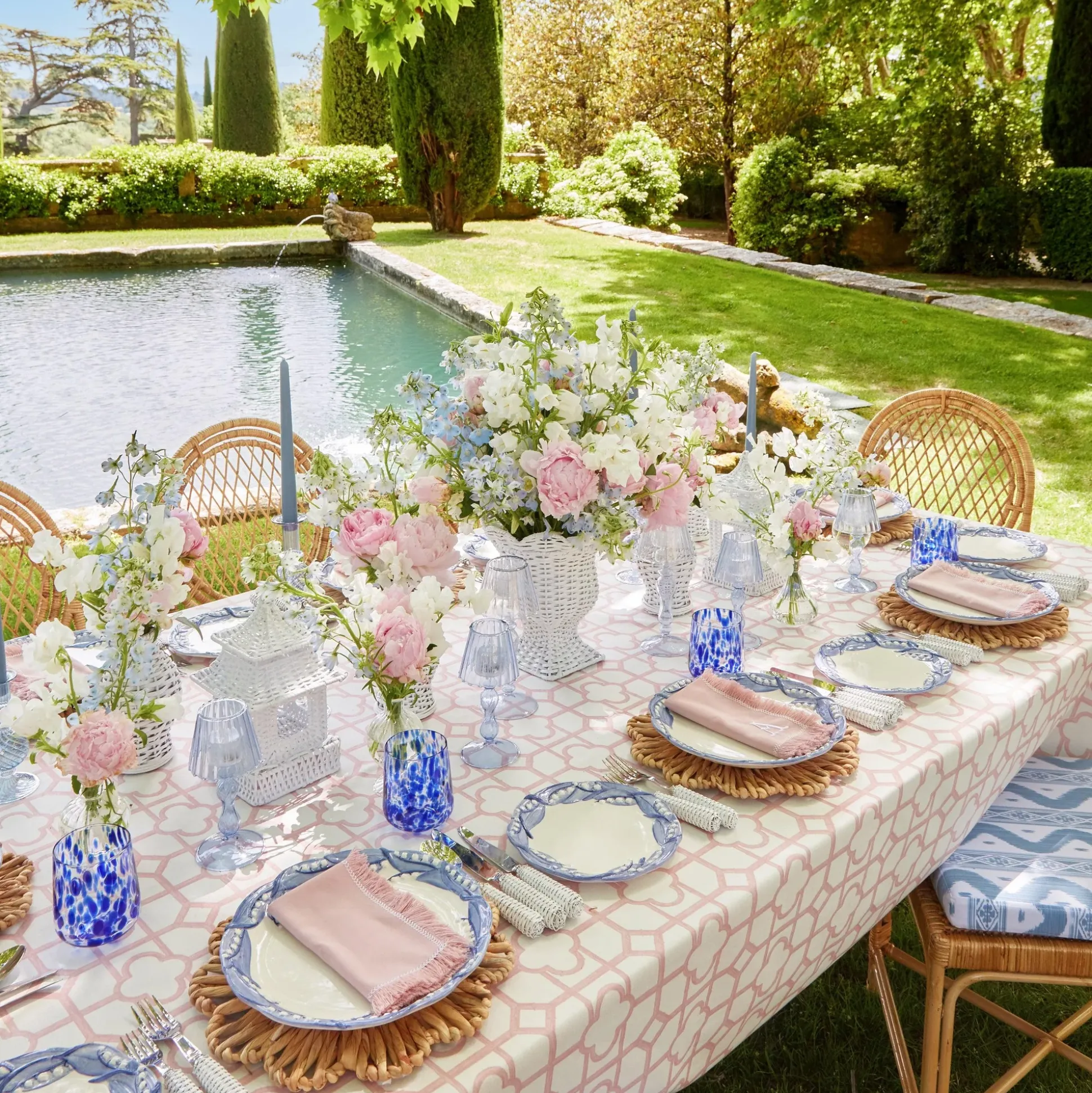 White Rattan Pagoda & Urn Vase Set